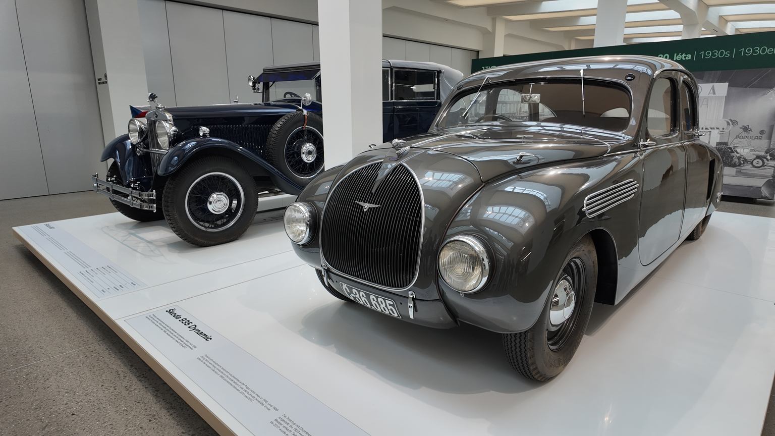 Skoda 935 Dynamic 1935 là đỉnh cao kỹ thuật và khí động học ngang tầm hãng xe nổi tiếng châu Âu như Mercedes-Benz. Bên cạnh nó là chiếc Skoda 860 sản xuất năm 1930, đại diện cho độ hoàn thiện thủ công tinh xảo của người Séc.