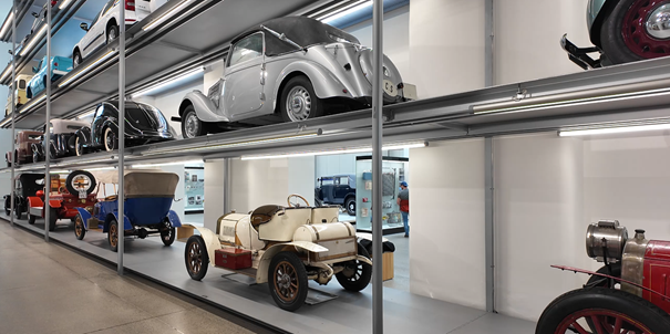Điều đặc biệt khiến bảo tàng trở nên sống động là lịch sử của hãng không chỉ để trưng bày, mà bằng những chiếc xe cổ vẫn còn hoạt động được, cùng các bản vẽ kỹ thuật chi tiết.