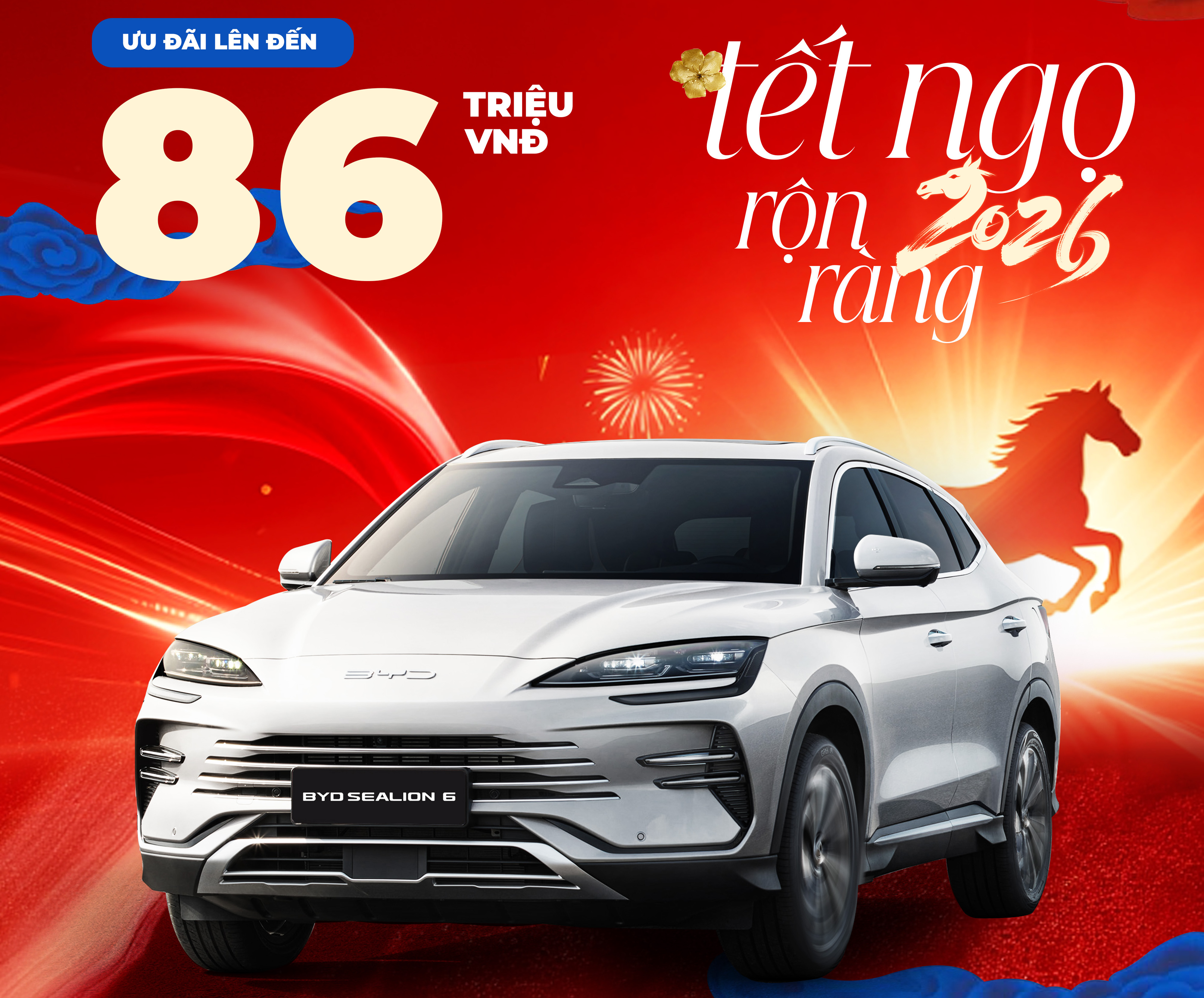 Ngay đầu tháng 1/2026, BYD Việt Nam chính thức khởi động chương trình ưu đãi lớn đầu năm mang tên “Tết Ngọ Rộn Ràng – Ưu Đãi Ngập Tràn”, áp dụng cho tất cả khách hàng mua xe mới trong hệ thống từ ngày 1/1 đến hết ngày 28/2/2026. Chương trình áp dụng cho các mẫu xe thuộc các phân khúc khác nhau – từ xe điện đô thị, sedan DM-i Super Hybrid, SUV gia đình đến các dòng xe cao cấp với tổng giá trị ưu đãi có thể lên tới hàng chục triệu đồng cho mỗi xe.