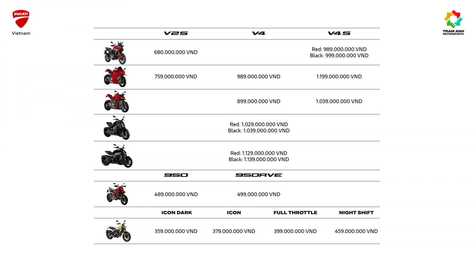 Nhà sản xuất xe mô tô của Ý - Ducati Motor Holding S.p.A đã chính thức công bố nhà nhập khẩu chính thức mới tại Việt Nam là Trâm Anh Motorsports (TAMS), bắt đầu 01 tháng 09 năm 2025, thay thế cho CT Wearnes, công ty đã rút khỏi mảng ô tô và xe máy tại Việt Nam (Bentley, Lamborghini, Aston Martin, KTM/Husqvarna…).