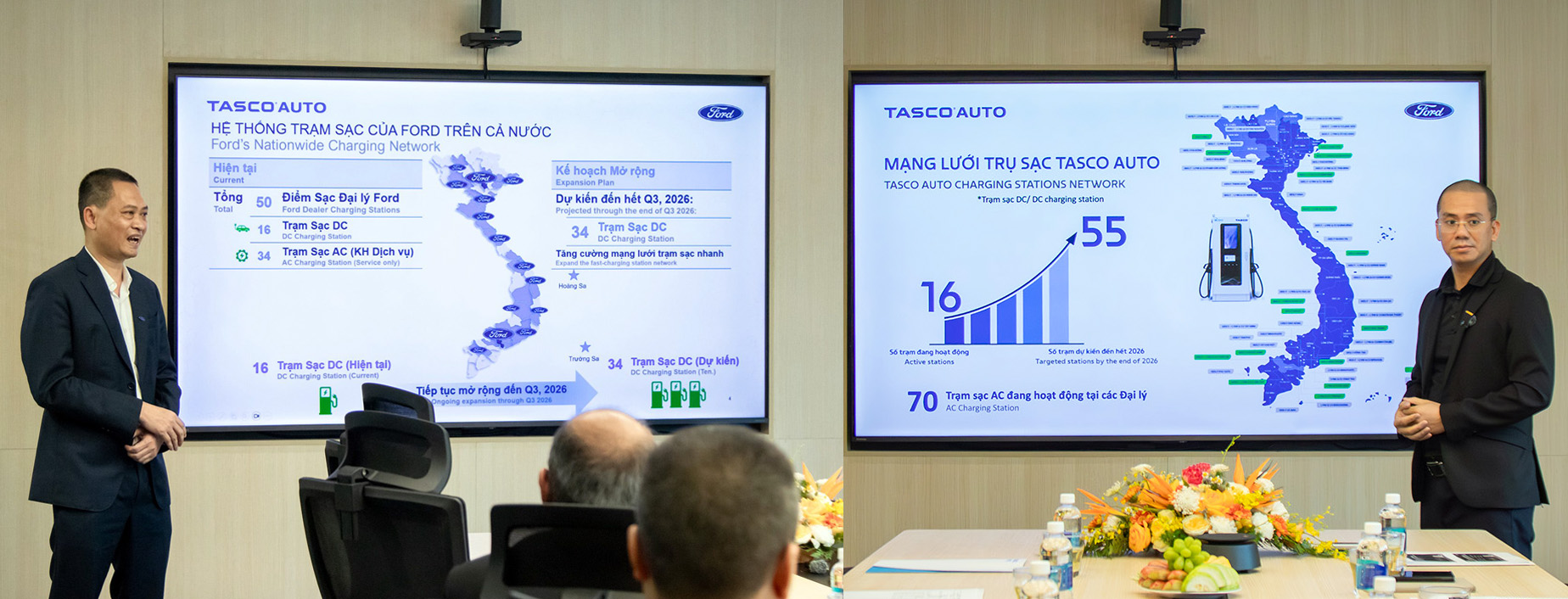 Ford Việt Nam hiện đang đầu tư và phát triển 34 trụ sạc tại các đại lý, còn Tasco Auto dự kiến sẽ hoàn tất 55 trụ sạc nhanh tại hệ thống showroom và các điểm thuộc hệ sinh thái Tasco trên toàn quốc. Với số lượng trạm sạc phủ khá rộng thực tế, mới đây cả Ford Việt Nam và Tasco Auto đã chính thức ký kết Biên bản ghi nhớ trong việc chia sẻ hạ tầng sạc xe điện. Mở ra một cơ hội thuận tiện và hướng đi mới về trạm sạc cho các hãng xe điện tại Việt Nam.