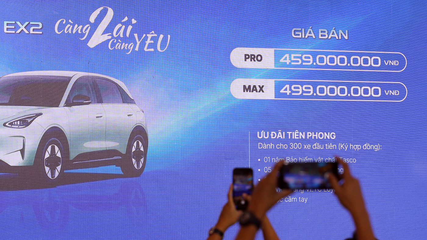 Geely EX2 tại Việt Nam có hai phiên bản: Bản EX2 Pro có giá bán 459 triệu đồng, phiên bản EX2 Max có giá bán 499 triệu đồng.