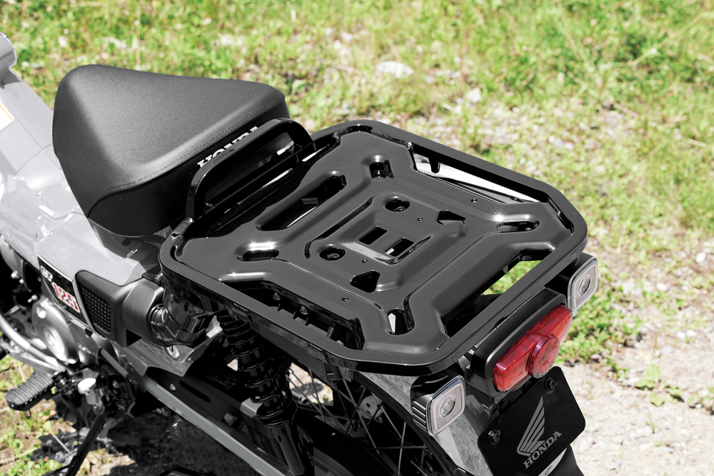 Phía sau xe hãng bố trí giá chở hàng kích thước dài 477 mm và rộng 409 mm, đi kèm 4 móc treo giúp người dùng có thể chở hành lý, dụng cụ cần thiết cho những chuyến đi.