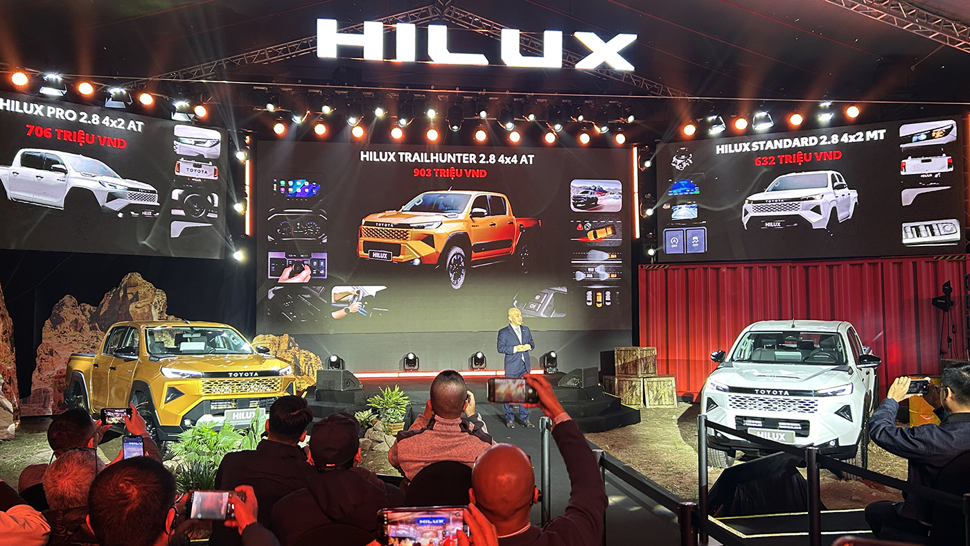 Toyota Việt Nam (TMV) vừa giới thiệu thế hệ mới dành cho mẫu bán tải Hilux, xe được nhập khẩu nguyên chiếc từ Thái Lan và chính thức bán ra từ ngày 29/1/2026 với ba phiên bản có giá 632 - 903 triệu đồng, gồm: Standard (số sàn 4x2), Pro (số tự động 4x2) và Trailhunter (số tự động 4x4). Đáng chú ý nhất, Hilux 2026 thay đổi mạnh về thiết kế, thêm nhiều trang bị tiện nghi, chế độ địa hình và công nghệ an toàn. Với ba phiên bản, giá khởi điểm từ 632 triệu đồng, Toyota Hilux thế hệ mới tạo ra lợi thế cạnh tranh về giá tốt nhất trong phân khúc xe bán tải hiện nay